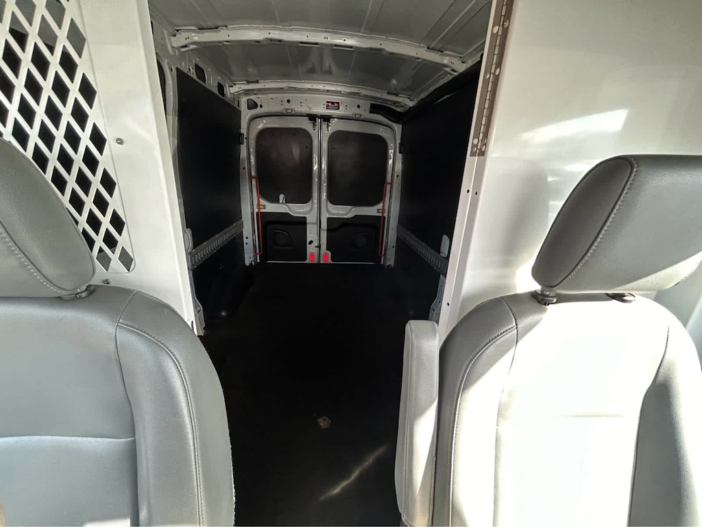 complete rear polypropylene panels on side walls and doors, Front and Rear Vinyl Floor Covering, Include wheel well cover and rear/side scuff plates, RUNNING BOARDS, REMOTE KEYLESS-ENTRY KEYPAD, CARGO AREA LED LOAD COMPARTMENT LIGHTING PACKAGE, Safety Canopy Side Curtain Airbags, Driver & Front Passenger-Side Front Airbags, SEIC capability (STD). Ford Transit Cargo Van with Oxford White exterior and Pewter interior features a V6 Cylinder Engine with 270 HP at 6500 RPM*.