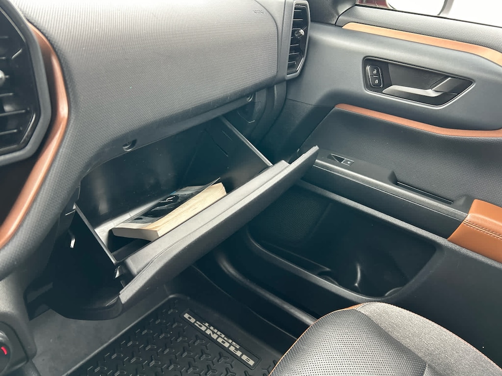 I got a 2025 Big Bend with the black diamond off road package. The steel modular front and rear in combination with bush guard gives this year model. A very aggressive off road look. With the ability to easily mount accessories and power them with the factory installed auxiliary switches. Hitch receiver seamlessly mounted into the rear steel bumper flanked by some very chunky recovery points. The upgraded aluminum rims wrapped with Continental all-terrains. It make this the most capable bronco sport yet. The interior of the 2025 has been updated with a new 13 inch touchscreen with Android Auto and apple car play. The lines of the dash flow elegantly from the new infotainment screen to the new all digital 12 inch gauge chaster. Toggling through the different modes on the gauge chaster is very intuitive, and all the displays are laid out very cleanly. Moving from gauge chaster the center storage cubby just below the infotainment screen there is a wireless charger and USB/ USB-c ports. The passenger side of that same cubby gets a handle and a matching one on the roof just in case the driver bucks a little too much. The passenger also gets a mesh storage area. That leads us to the fact this vehicle has tons of storage options all throughout. You have pockets on the sides of the front two seat big enough for the latest new phones. Very generous door storage on all four doors plus huge glove box and center console with 12 volt outlet. The back side of the center console has air vents and another 12 volt outlet plus a 110 outlet. Now getting to the cargo area it is massive for a crossover SUV. With off road package you get a cargo management system and a very nice rubber mat. Under that there is a full size tire plus scissor jack and funnel to use with the capless filler system. On the liftgate there isa pair of very bright led lights turned on with a switch in the cargo area. This feature packed vehicle has tons awesome gadgets and hidden a little homages I spend all day just talk that. At the end of the day it is car. So how does it drive. It is wonderful, the steering and pedal response is beautiful. Rides very smooth and little to no road noise going down the highway. The active cruise control and co-pilot 360 have been very handy. The car literally drives itself most of the time. There is not enough good things I could same about this car. I love it and you pick one too. You will see what I mean. - 5.0