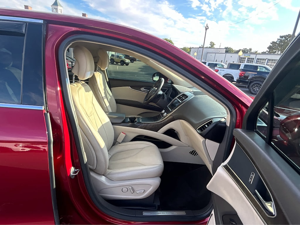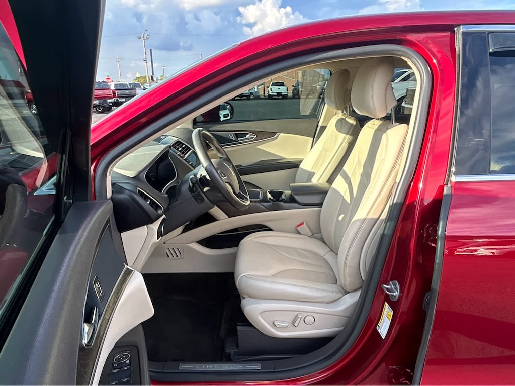 RUBY RED METALLIC TINTED CLEARCOAT, CAPPUCCINO, PREMIUM LEATHER-TRIMMED HEATED BUCKET SEATS (AC): micro perforation, 10-way power driver/passenger seat w/2-way power lumbar, driver memory and 4-way manual adjustable front headrests, EQUIPMENT GROUP 101A, ENGINE: 3.7L TI-VCT V6 (STD). Lincoln Select with Ruby Red Metallic Tinted Clearcoat exterior and Cappuccino interior features a V6 Cylinder Engine with 303 HP at 6500 RPM*.